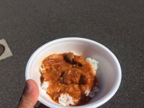 水野仁輔さん「カレーの車」のカレー、なんとさんまカレーは売り切れてしまったそうですが(食べたかった!)、ももカレーのほうはまだあるそうで、一杯いただきました。