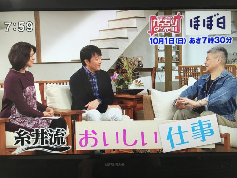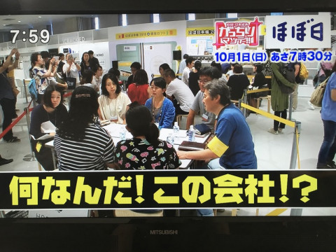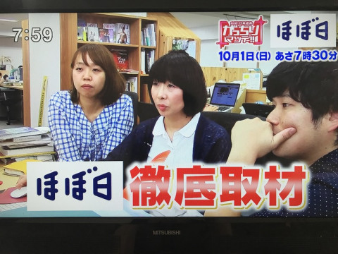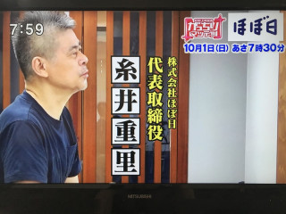 ほぼ日ががっちり? 来週10月1日(日)はちょっと早起きを! 朝7:30からTBS系列の「がっちりマンデー!!」にほぼ日が取り上げられます。 最初はなんなんだ、この会社? と首をかしげていたディレクターさん。 ほぼ日手帳をつかいはじめ、なんどもなんどもかよってくださって社内のミーティング、ほぼ日の読みもののこと、商品のこと、あたらしい試みのこといろいろな担当に聞いて回っていました。 そしてスタジオでは加藤浩次さんと進藤晶子さんが どの部分がどのように放送されるのかわたしたちもたのしみです。 今日の放送の最後に出ていた予告を見るとかなりてんこもりな予感。 来週は早起き、もしくはいまから録画予約をお願いします! 2017/09/24 08:07 |