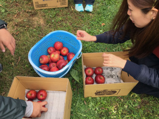 ジャムチーム、長野をゆく。 先週の話になりますが、 ジャムチームの (途中でモギたちと合流をしたりして‥‥たのしかったー!) 出かけてきたのは、りんご農園。 いろいろなりんごの説明を聞いたり、ちょっと収穫させてもらったり‥‥。 とれたてのりんごは、もう、すばらしく美味しかったです! それにしても「ジャムチーム」が、 「りんご」農園に‥‥? ふふふふふ、勘の良いみなさん、そのとおりですよ。 この秋ご紹介できると思います。 どうぞ、おたのしみにー! 2017/10/10 14:56 |