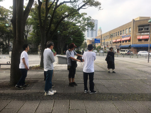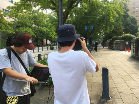 色づきはじめたイチョウの葉っぱを背景に撮影快調!