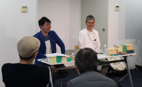 模擬授業大盛況でした! ただいま受講生募集中の「ほぼ日の学校」。 開校に向けた準備のため、初回講師の演出家・木村龍之介さんをお迎えして、模擬授業を行いました。 個人史をまじえた木村さんのお話に乗組員一同ぐいぐいと引き込まれ、 劇の一幕のほんの一部を女優ののぐち和美さんと、まいみさんが演じてくださった場面では、もうみんな心を鷲づかみにされ、シェイクスピアの世界に引き込まれました。 終わって、木村さんと いよいよ本番授業が楽しみになった木村さんと乗組員一同でした。 2017/10/18 15:26 |