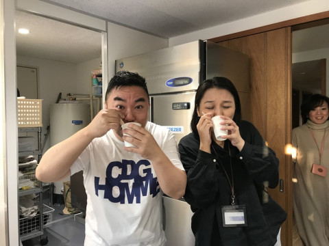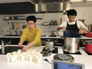 「しるこスタンド」予行練習。 本日は、なかしまさんが会社にいらしております。 なにをしていたかといいますと 「生活のたのしみ展」のフードトラック・しるこスタンドで提供される 「おしるこ」の予行練習をしておりました。 当日、鍋はどの大きさにすべきなのかどのくらいで提供できるのか、カップとスプーンは大丈夫か、などなど、きっちり確認いたしました。 確認した後で、もちろん「おしるこ」を乗組員でおいしくいただいたのです。 まじであったまりました。 おいしかった。 もう3杯くらい一気に食べたかった。 2017/11/01 18:01 |