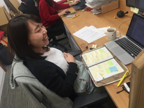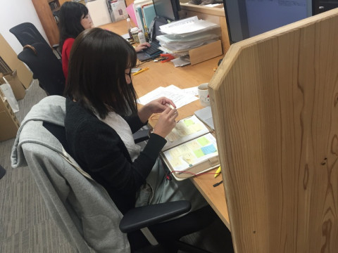 がんばれきょんちゃん。 いま、 「ああー、そうだ‥‥! それもやらなきゃ‥‥!」 と、やや心を乱していました。 「生活のたのしみ展」のWEBまわりを担当しているので、いま、とても、大変です。 だいたい、手帳に貼っているふせんの量がおそろしい。 前はもっと、イラストとか描いてあったかわいい手帳だったのに。 今年3月に入社したところなのに、冷静に素早くいろんなことに対応できるので、いろんな人から頼りにされちゃって (されすぎちゃって)、大変なのです。 わたしが言いにいった用事も青い付箋となって貼られ、 「あさみさんのせいで付箋が1つ増えた‥‥」 と言われてしまいました。 (我々は同じ苗字なので下の名前で呼び合っています) ご、ごめんよ‥‥。 隣の席の こんどこのエリアにくるときは何かお菓子を差し入れしよう、と思いました。 みんな、がんばりましょう〜。 2017/11/08 16:37 |