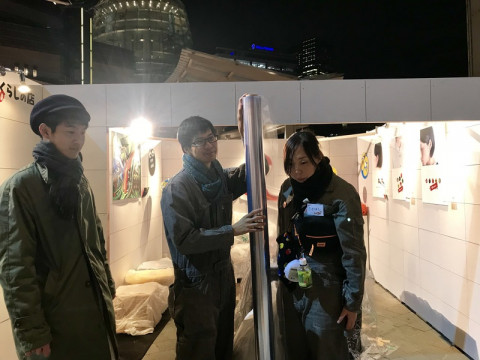 1枚目の写真は、お天気対策を真剣に考えている3人です。