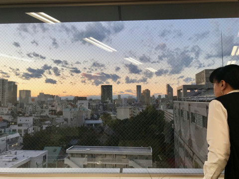 我らがほぼ日オフィス、デスクから球場やら立派な街路樹が見えるんですが、なんといっても、この夕空が見えるのが、いちばんの自慢です。