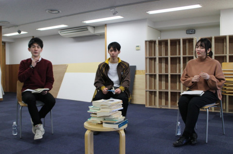 若き俳優さんたち 12月22日の「ほぼ日の学校」 スペシャル「ごくごくのむ古典」で、パフォーマンスを見せてくださるシアターカンパニー・カクシンハンの若き俳優さんたちが練習にいらっしゃいました。 舞台の練習なので、歩き回ったり、声を出したり‥‥なのかと思っていたら、かなり長い時間座ったまま。 何をしているのか、こっそり耳をすましてみると、初日の今日は頭と心の準備体操。 古典とは何か。 古典のことばを伝えるとはどういうことか。 そういったことを静かに議論していたのでした。 みなさんそれぞれに、この日のために「好きなことば」 を選んできてくれていました。 その中からいくつか。 人間は取引をする唯一の動物である。骨を交換する犬はいない 。(アダム・スミス) 言葉とは、尽きることのない魔法の源じゃ。 (ダンブルドア) 嫉妬は愛の王国の暴君である。 (セルバンテス『ドン・キホーテ』より秘すれば花なり、秘せずは花なるべからず。(世阿弥) 金色のちひさき鳥のかたちして銀杏ちるなり夕日の丘に (与謝野晶子) それぞれに味わい深いですね。 2017/12/07 18:32 |