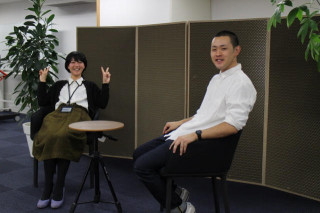 椅子を並べて、音声チェックをし、背景屏風をつくります。