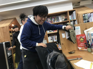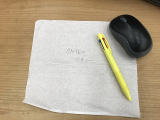 ティッシュに残された‥‥。 それは先週のことじゃった。 おとなりの この紙にこのようにメモが書けるなんて、水性のゲルインキはなかなかのすぐれものだなとあらためて関心しました。 ちなみに、このあとの展開は、このティッシュを水に流して、ダイイングメッセージがあったのになくなってしまっててんやわんや、みたいなやつですよね。 あ、トイレットペーパー以外はトイレに流したらいけないからそのトリックは社会的に正しく無いのか。 いや、事件に社会性もなにも‥‥。 物語だしって物語でもなんでもないし! 出社してきた (カメラをむけたら顔をつくってくれてありがとう。乗組員の鑑です。) 2017/12/18 10:19 |