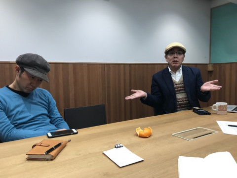 5分間の休憩をはさみますと。 先日、わたくしどもは京都のTOBICHIでできるかもしれないことについて、ちょっと相談をしていました。 相談をしているときに山下が電話をかけないといけない時間になり会議中だけど、とりあえず5分中断。 ぼーっと待っていたら目の前のひとが盗み寝をしていたので激写しておきました。 電話が終わってもなかなか目をさましませんでしたが、さました途端に、まるでいままで寝ていなかったように滑らかに会議に入ろうとしたので、さすがにそれはつっこませてくれよ。 2017/12/18 18:25 |