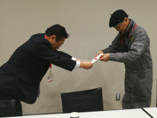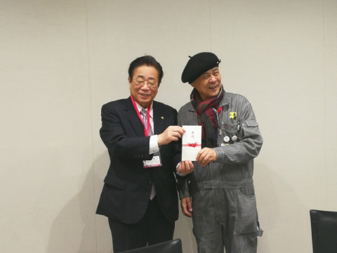 相馬で気仙沼さんま寄席の報告 「相馬で気仙沼さんま寄席」の報告で、一緒にツアーをつくってくださったJTBさんが来社くださいました! (なのに写真を撮り忘れたので、いただいたカレンダーで一枚‥‥。) 生活のたのしみ展があり株主総会があり、去年のことのように思えますね、なんて話をしながら、9月のあの日のことを懐かしみました。 相馬の立谷市長は生活のたのしみ展に! サイトではお伝えしていますが、直接市長に寄付額をご報告です。 普段は陽気な市長も、こういう場面ではしっかりモード。 でもまたすぐにいつもの調子で、地球儀を買ってくださったり、相馬での取組みを教えてくださったり、一瞬なのに濃密で大笑いの時間でした。 「また、相馬市に来てくださる方々のためにお使いください!」と最後に目録をお渡ししました。 個人的には、また相馬に行くときはあんざい果樹園で果物がりをして、浜通りでおいしいものを食べて、パークゴルフで「さんま寄席杯」を開催したいです。 これにて「相馬で気仙沼さんま寄席」 やっと一段落です。 写真の振返りは懐かしい気持ちになれるので、ぜひ年末ゆっくりおたのしみくださいね。 台風もありどうなることかと思いましたが、会場での笑い声が力になりました。 みなさん、ありがとうございました〜! 2017/12/19 17:00 |