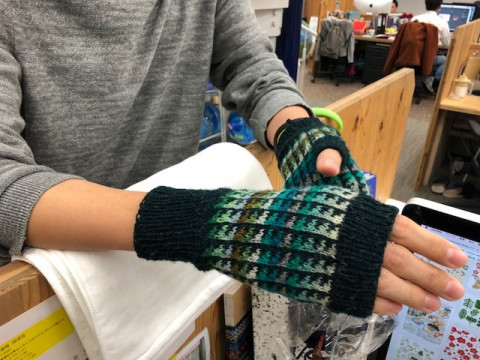 お正月の編みもの成果 目薬ポーチから「うれしいセーター」のKENに スーパージャンプを見事決めた 「冬休みに編んできましたっ」と lakeを見せてくれました。 年末には片方手首しかできてなかったのに、編み込み(複数の色糸で柄を作ることです)がうまくできないと悩んでいたのに、親指の拾い目なんてみんな悩むのに、 「Miknitsの編み図と基礎図はほんと必要なことが全部書いてますよねー。 おまけ動画を見たら拾い目も大丈夫でしたよ。」 とニコニコ作品を見せてくれました。 もうこれでどんな寒い日も自分で編んだジャケットと手袋で完全防寒です。 lakeは結構糸も細いし、大変だとおもうんですが…すごいなー。 次はガンジーセーターを編むらしいです。 イタニティ、突き進んでくれ! 2018/01/09 20:20 |