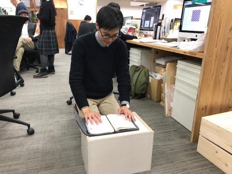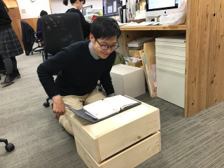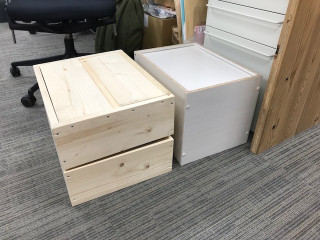 棚や机も自分たちで準備していて、仕事はじめ早々に、いい箱を見つけたところです。