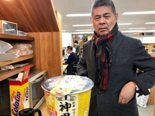 鴨南ばん さあ、これから! 明日はじまる銀座ロフト6階の『星空の谷川俊太郎質問箱展』の設営に行くぞ。 行く前に腹ごしらえだぞ。 と意気込んでいたら、 「いいものあげるよ」 と言って、カップのそばをくれました。 『神田まつや 鴨南ばん そば』 箱買いしたのだそうです。 箱買いしたのに、まだ食べてないそうなんです。 だから、私がお湯を入れて食べはじめるまで、見守って待っていました。 「おいしいって言うのを見ていようっと」 と‥‥。 「どれどれ」と寄ってきました。 食べにくいったらありゃしな‥‥ズルズル。 かなり、おいしかったです。 社長、ごちそうさまでした。 2018/01/17 19:25 |