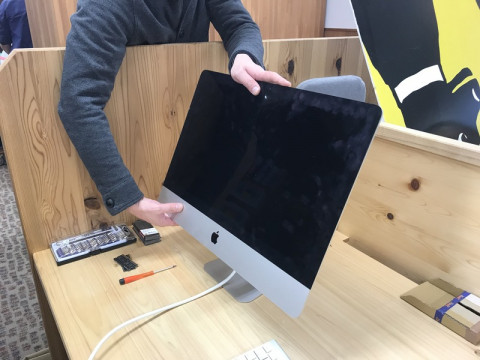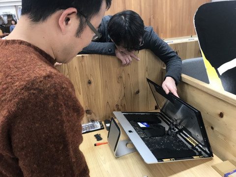 あけまして! ご飯をかって社内をぷらぷらしていたら緊迫する机上を発見しました。 パカーンとあいています。 コンピューターがパカーンと。 ワニの口のように。 聞けば、通電はしていて中身は動いている気配があるのだけれどもまったく映らなくなった、と。 ワタクシでしたらここでお手上げですが、そこは とりあえず、あけてみて、自力でどうにかするという選択肢もあるのです。 あいたものをもう一度しめて再起動的なじゃ〜んという音もしていましたがなかなかモニタは戻りませんのでこのへんでレポートを終了します。 健闘を祈ります。 2018/01/22 13:47 |