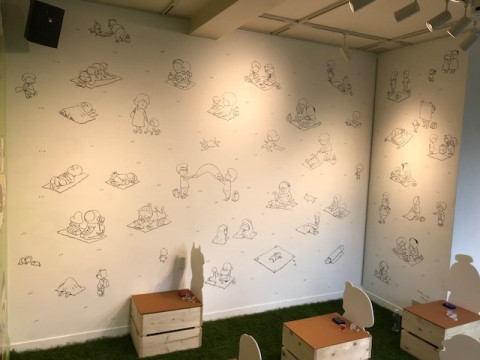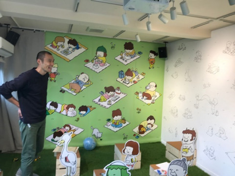 壁いっぱいの絵 TOBICHI2の壁いちめんに描かれたヨシタケシンスケさんの絵。 およそ3時間をかけて、ここまでたくさんの絵で埋まりました。 壁に描くことは初体験とおっしゃっていたヨシタケさんですが、あそびに来た人たちが喜んでくれそうな空間づくりをありがとうございました! 「ヨシタケシンスケ&猫のぽー TOBICHIのあそび場」は、東京会場が2月1日から2月12日まで。 京都会場が2月1日から2月7日まで。 ぜひ足を運んでみてくださいねー! 2018/01/31 17:29 |