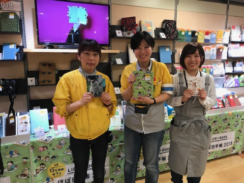 池袋ロフトでも販売中! ロフトめぐりをしている 「仕事帰りに買物ができる池袋ロフトです。 雨でもヘッチャラでお客さんがいます。 池袋ロフトのスタッフにオススメ手帳を持ってもらいました。 一列にサンプルが並んだ、選びやすい売場です。 こちらもヨシタケさんのシールは完売してます! こんなに人気なシールって、聞いたことない。 渋谷に行きますー」 ロフト出身で、長年売り場を見てきている 「こんなに人気なシールって、聞いたことない」 と言わせてしまうヨシタケさんのシール、さすが‥‥。 ちなみに、スタッフのみなさんがそれぞれオススメとして持ってくださった手帳は、左から順に「ぽー」のオリジナル、 ヨシタケシンスケさんのカズン、そして「A VERY MERRY EVERY DAY to you」のオリジナル、でした。 池袋ロフトのみなさん、ありがとうございます。 springもまた、よろしくお願いします! 2018/02/01 20:33 |