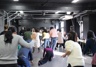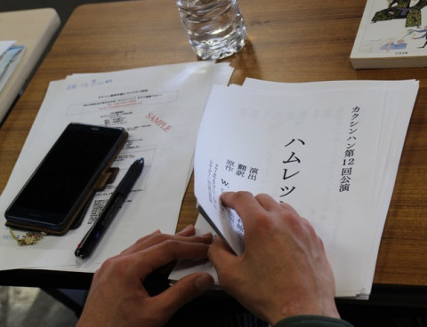見学 ふぅ! 演劇がはじまる前、そのもっともっとずっと前、産声を聴いてきました。 4月上演の「ハムレット」 に向けて、本稽古前のワークショップが始まりました。 演出は、ほぼ日の学校シェイクスピア講座講師の一人、木村龍之介さん。 役を交代しながら台本を読み合わせたり、そうかと思うと、 「頭からオニギリがでてくる」 それを体で表現したり‥‥。 濃密な時間を重ねることで、他のどこにもない舞台が、醸成されていくのですね。 ほぼ日の学校は、シアターカンパニー カクシンハンと、楽しいコラボ企画を計画中。 詳細が決まったら、またお知らせします! 2018/02/06 17:28 |