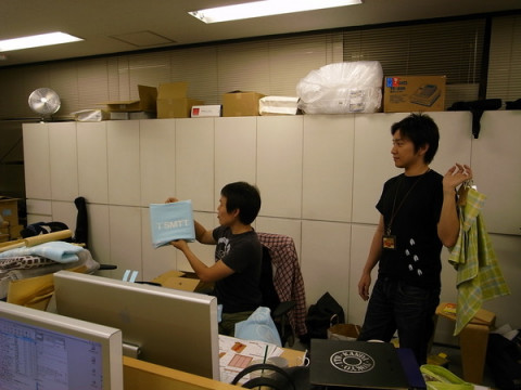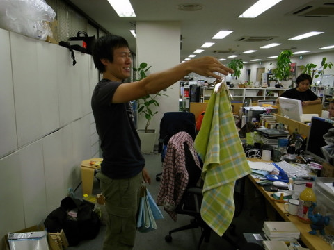 すてきなお仕事。 連休前も大活躍をしていた山口工務店ですが、明日からオープンする 「ほぼ日ストアMARUNOUCHI」も 「見て、見て。 ハラマキの特製ハンガー。 ハラマキの幅でちゃんと止まるように つくったんだよ」 「サンプルには、 はと目で穴をあけて、 サイズがわかるようにタグを通してさ、 こうやってつるすとかわいくない?」 ぐっさんの丁寧な工作っぷりと思い入れたっぷりの熱弁にまわりのみんなは笑うばかり。 このきめ細やかな工務店仕事が伝わるといいなぁ。 なにせこの世の中にハラマキ専用ハンガーなんて存在しないですからね。 ほぼ日ストアのマークがついた棚ももちろんぐっさんのデザインです。 明日オープンの 「ほぼ日ストアMAUNOUCHI」は東京駅からすぐ近く、丸ビルの4階、 丸の内ロフト内にあります。 ぜひお立ち寄りくださいね。 2009/05/11 20:14 |