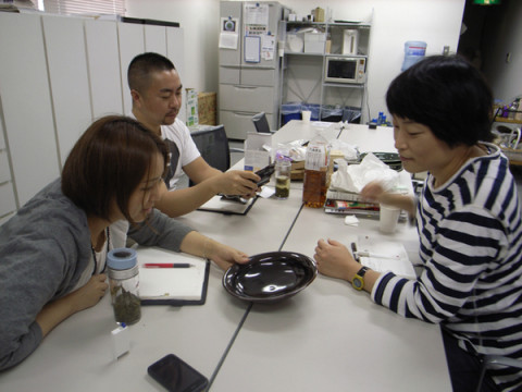 で、鍋しきの次は、ということで、土鍋チームが、皿をみている。