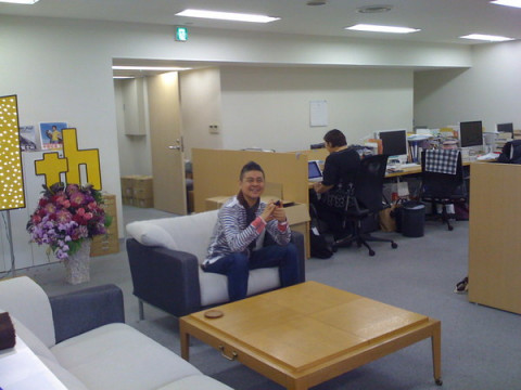 ダジャレをかます。 さて、12年目のほぼ日ですが、やはり週明け月曜日は、ワサワサしています。 ワサワサしているところに、 が、外の打ち合わせからもどってきました。 iPhoneについて、なにかを 「それは再起動ですね」 「なるほどー。再起動。再起動。 ‥‥さえ起動チズ。 わっしゃっしゃ」 週明けから、ダジャレをかましています。 社長の背後には、お祝いのお花。 きれいですね。 こんなわたしたちを、今後ともよろしくおねがいしますー! 2009/06/08 14:16 |