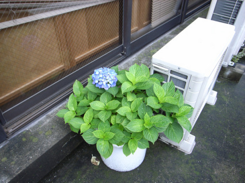 そんな入梅2日めに、会社のベランダに紫陽花が一輪咲いてるのをみつけました。
