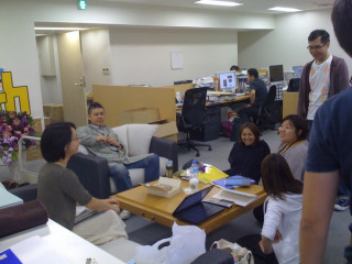 大人数でわいわいとたのしそうですが、こういうオープンスペースでミーティングをすると、たまたま通りかかったひとが、巻き込まれたり、巻き込まれにいったりして、たのしいです。