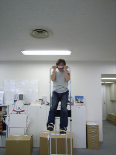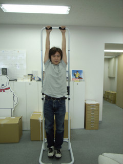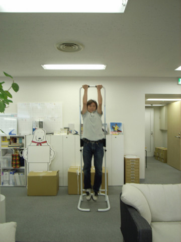 健康器導入 弊社にあらたなマシーンが導入されました。 なつかしいぶら下がり健康器です。 500円札を知らないくらいの若人諸君はご存知かな? 調べてみますと、1978年に大ブームがあったようです。 私は、「ぶら下がり」以前に生まれています。 「ぶら前世代」です。 それはさておき、我々は今後ぶらさがって参る次第です。 さきほどためしてみたところ、腰のあたりが、ふだんの暮らしではありえないような伸びを感じました。 「ぶら後世代」の (正しい使い方なのかは よくわかりませんが) 2009/06/17 14:48 |