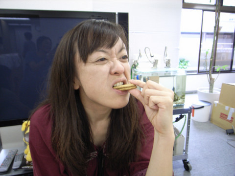 冨ちゃん! どこから帰国したかといえば、わいは〜である。 休暇をとってフラダンスの大会にでていたのだ。 土産話を聞きながら土産をたべるひととき。 今回は、ピーナッツバタークッキーで乾杯! う、うまい! このままここで投稿を終了したならば、まったく意味の無い投稿になってしまいかねないわけだが、それはやめたほうがいいな。 で、冨ちゃん、今後の予定は? 「いま、とある本の編集中なので、 これを、ばりばりっと カタをつける予定。 フル充電してますから、 冨田=長持ち=ひろので まいりたいと思います。」 2009/07/01 13:53 |