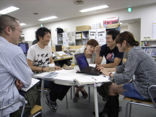 狭い! 弊社、ただいまみょうに大車輪中につき、会議室の予約が取りづらくなっています。 緊急に会議をというようなことがあるとこのように会議室ではないところで会議をするハメになるのです。 本日は、6人でする会議をこの1メートル四方のテーブルで行うことになりました。 おまけに そのコーヒーとかは超あぶないんじゃないかな? たぶん。 こちらの会議ですね、なんの会議かといえば、『黄昏』の会議です。 『黄昏』といえば、南伸坊さんです。 あの、アレです。 2009/07/03 12:16 |