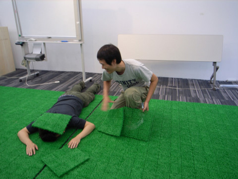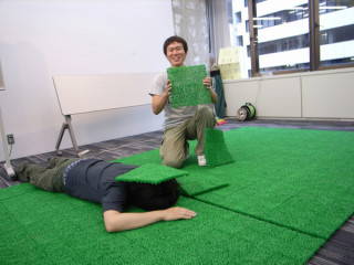 「ねえ、 西田マン、芝生に 溶け込んでるかんじ?」