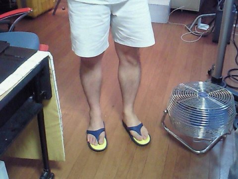 サンバイザー眼鏡にハサミ男、もう1人は、部屋でビーチサンダル‥‥。