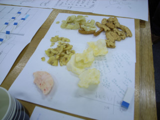 ハイテンション この写真は、先日の夜に撮影したものである。 これから、弊社がもっとも忙しくなる季節である。 なぜならば、「ほぼ日手帳2010」の販売が近づくからなのである。 ストアチームから商品チームから読み物チームからデザインチームまで総動員なのである。 こういう忙しい時にこそよゆうというやつが必要で、その一助となるのは 「おやつ」である。 この先、ソファー前で、深刻な〆切を前にしておかしなテンションでおやつをつまみながら打ち合わせをする光景を目にすることが増えるのだろう‥‥。 2009/07/28 14:05 |