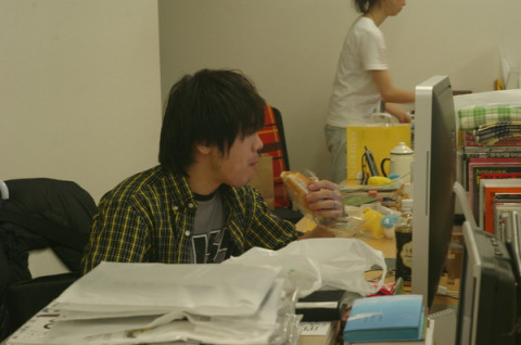 はこの喧騒のなか、なんと、ゆっくりパンを食べておりました。