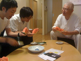 こちらは、書籍「黄昏」のブックデザインの打ち合わせと、伸坊さんに描いて頂くイラストの依頼、スケジュールの確認などでございます。