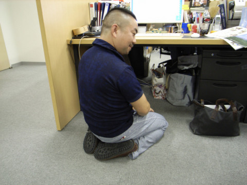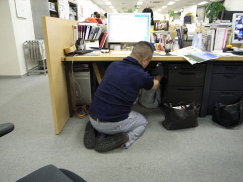 がごそごそと机の下のものを探しています。