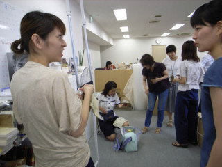 で、みんなは、1週間ぶりに、健康飲料の販売のお姉さんのところにむらがっています。