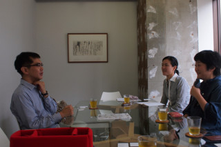 山下、取材を受ける。