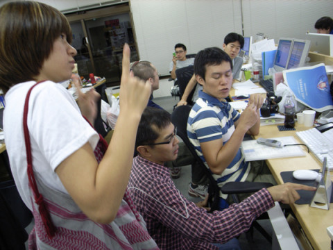 は、あしたの「ほぼ日手帳2010」のトップページのデザインについて、相談をくり広げております。