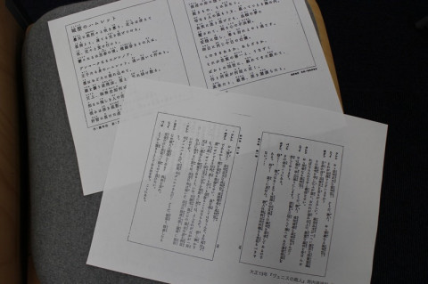 受講生のみなさんのイスには、今日の参考資料。