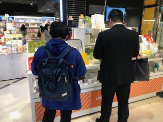 ロフトでも販売中! 本日発売の「ひきだしポーチ」。 全国のロフト16店舗でも今日から販売がはじまっています。 (取り扱いがあるのは、渋谷、池袋、銀座、吉祥寺、立川、横浜、大宮、千葉、札幌、仙台、名古屋、梅田、あべの、神戸、京都、天神のロフトです) そんな、発売日当日。 さきほど「売り場を見てきまーす。 写真おくるね!」とたのしそうに出かけていった 「1枚目が銀座ロフト、2枚目が渋谷ロフトです!」 あら。 売り場のようす、まったく見えない‥‥(笑)。 とりあえず また、お店の人によると、ロフトで特に人気があるのは、 「Peacocks of Grantham Hall」 「mermeid」「イエロー」だそうです。 これは、ほぼ日ストアでの人気順とも連動しています。 なんだか、ほとんど参考にならなそうな写真ですみませんが(苦笑)、 「引き出しポーチをとにかくはやく手に入れたい!」 というみなさま、よければロフトの該当店舗にお立ち寄りになってみてくださいね〜。 2018/03/01 19:47 |