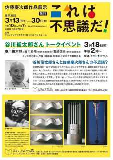 谷川俊太郎さんのトークイベント in 岐阜 今年1月に、ほぼ日ブックスから発売した 『星空の谷川俊太郎質問箱』。 みなさま、もう読まれましたか? 本を開くたび、その日、その日によって読むときの自分の気持ちに変化があってとても面白いなぁと思います。 64の質問に、谷川俊太郎さんはどんなふうにお答えになったか。 まだ読んでいないかたはぜひ本屋さんでチェックしてみてくださいね。 さて、今日は谷川俊太郎さんが登壇されるトークイベントのご紹介です。 3月18日(日)14時から、岐阜県の 「ぎふメディアコスモス1階」で 佐藤慶次郎作品展示記念トークイベント 「谷川俊太郎さんと佐藤慶次郎さんの不思議?」 が開催されます。 参加ご希望のかたは、当日13時開場で先着順に入場できるそうです。 椅子100席のご用意があるそうですが立見のご観覧も自由にできるそうですのでお近くのかた、ぜひ! 2018/03/06 20:00 |