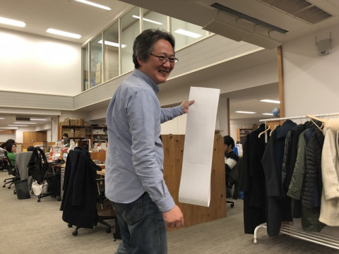 増えた増えた〜! おうちのカレーをおいしくする仕上げ用スパイス 「カレーの恩返し」の取扱店舗が増えました! このたび、 ・北野エース ・KOHYO ・ライフの一部のお店で取り扱いがはじまりました! <「カレーの恩返し」 全国取扱店リストはこちら。> 写真は、リストをプリントアウトして、喜びの舞を踊るホソイです。 「ほら、こんなに増えた!」 「現在、ほぼ日ストアを入れて221店舗で販売中!」 「これからもどんどん増えていきますよ〜!」 ほぼ日のロングセラーアイテム 「カレーの恩返し」。 カレー以外にも、和風おかずやチャーハン、スープなどにも使える、便利なミックススパイスです。 全国のみなさま、ぜひお試しになってみてくださいね〜! 2018/03/06 19:50 |