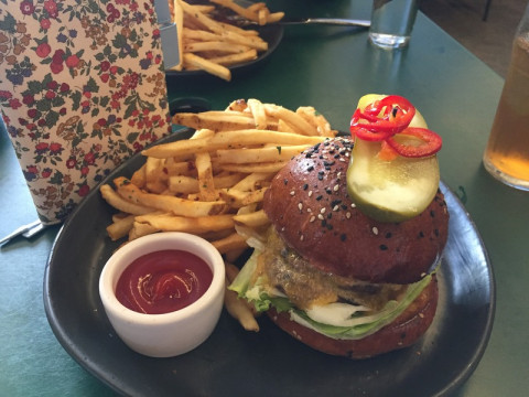この日のお昼に食べた、ハンバーガーと、フライドカリフラワー。