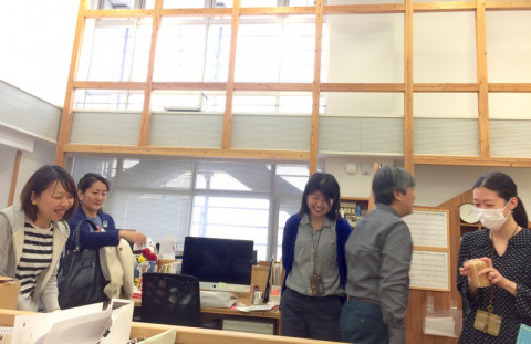 私の席のむかいは空席なのですが、最近、そこによく乗組員が集っています。