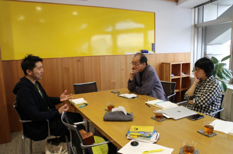 打ち合わせ 白熱授業がつづくほぼ日の学校シェイクスピア講座。 今日は4月の授業に向けて、演出家の木村龍之介さんと打ち合わせです。 「演出」を通してシェイクスピアと時代、シェイクスピアと人間を考えようという大きな構想が木村さんから語られました。 いまカクシンハンの公演に向けて演出の渦真っ只中の木村さん。 アイディアにあふれています。 打ち合わせの中で、受講生のみなさんの「力」に話が及びました。 先日の串田和美さんの講義の途中ワークショップのさなかに教室に入った木村さん。 「お、演劇やってる」と感じたそうです。 想像力をフル稼働して、イマジナティブに声を出す。 みなさんそれができていた、と。 宿題だった『テンペスト』の読破率の高さにも驚かされました。 講師と受講生のみなさん、みんなで作り上げる学校に育ってきている。 すごいなあと、語り合いました。 2018/03/16 12:32 |