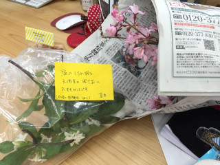 朝、会社につくと、私の机に新聞紙に包まれた花とビニール袋に入った花が置かれていました。