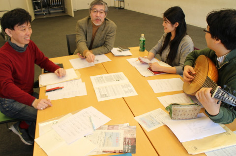 打ち合わせ 5月29日に草月ホールで開くほぼ日の学校 「シェイクスピアの音楽会」。 その打ち合わせに行ってきました。 講師の河合祥一郎さんを中心に、ヴィオラ・ダ・ガンバの中山真一さん、リュートの坂本龍右さん、ソプラノ歌手の佐藤裕希恵さん。 リコーダーの太田光子さんは、今日はお休みでした。 円卓の真ん中において、みんなで見て演奏するシェイクスピアの時代の楽譜。 初めて見ました。 合奏するための形式です。 ちょっと感動しました。 当日の流れを確認したあと、演奏して時間を計りながら、アレンジを相談していきます。 音楽家の打ち合わせは、当然ながら音楽つきです。 聴いていてこんなに楽しい打ち合わせって初めての経験でした。 音楽会についての詳細は、4月にお知らせできる予定です。 2018/03/19 18:38 |