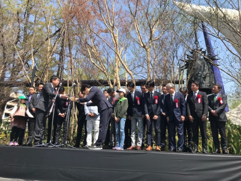市をあげてのイベントです 岡本太郎さんの 「太陽の鐘」が設置されたお祭りは、前橋市をあげての式典になっています。 前橋市長のごあいさつ、そして、この鐘の設置に尽力した 「太陽の会」の企業のみなさんへ感謝状が贈呈されました。 「太陽の会」会長のJINS田中仁社長のお言葉によると、この鐘は、棒が長くてひとりではつけず、みんなで「せーの!」でつかなくては鳴らないのだそうです。 田中さんは 「前橋のみなさんも、みんなで協力しあって、町を盛り上げていきましょう」 とおっしゃっていました。 2018/03/31 12:25 |
