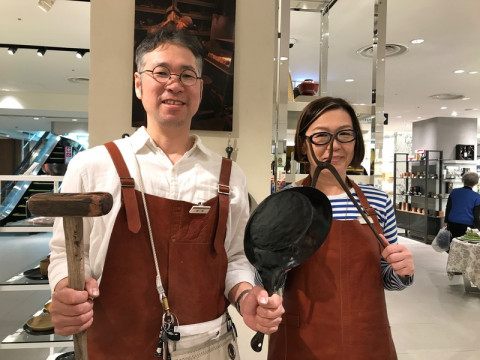 鉄の台所道具の槇塚さん 第2回生活のたのしみ展に出展してくださった、 槇塚登さん。 現在、銀座三越で開催されている 「和食の原点 一汁一菜」に参加されています。 フライパンディッシュや目玉焼きPAN、おたまなどの鉄の台所道具が並んでいます。 私はおたまに一目惚れし、購入してしまいました。 本日(4月1日)までは、槇塚さんとキッチンボタンのみなくちさんが会場にいらっしゃいます。 お二人のお話を聞きながら商品を見ることができますよ。 ぜひ、お出かけください。 ------------------------ 「和食の原点 一汁一菜」 3月28日(水)ー4月10日(火) 銀座三越 本館7階------------------------ 2018/04/01 09:30 |