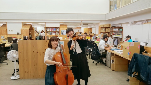 いよいよ今日、 「ほぼ日カルテット」が本番の日を迎えました。 両国国技館にて、ふたりの初場所(春だけど)。 スズキ・メソード グランドコンサートです。 社内で出発前のふたりに聞いたところ、本日終了後に、たぶん楽器もお返しするとのこと。 え、じゃあ、実際に楽器を奏でるところをみんなは見られないままかも!? (もちろん一部は観覧に行きます。) そこで急遽、ちょっとだけ弾いてもらいました。 わ〜〜なんだか、胸が熱くなりました。 毎日毎日、練習していたもんね。 きっとだいじょうぶ! がんばれ! 2018/04/04 11:52 |